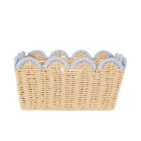 ตะกร้าเก็บของสานจากเชือกกระดาษฟางธรรมชาติแบบขอบหยัก สั่งซื้อจำนวนมาก ตะกร้าสานทำมือ ผู้ผลิตจากเวียดนาม